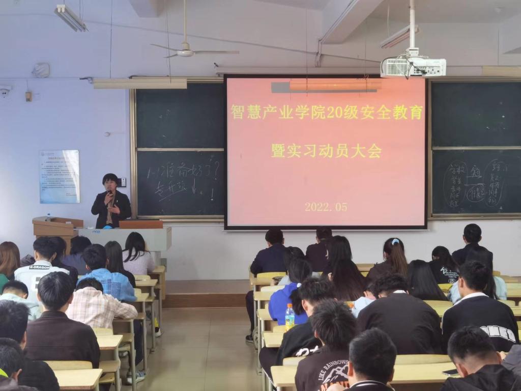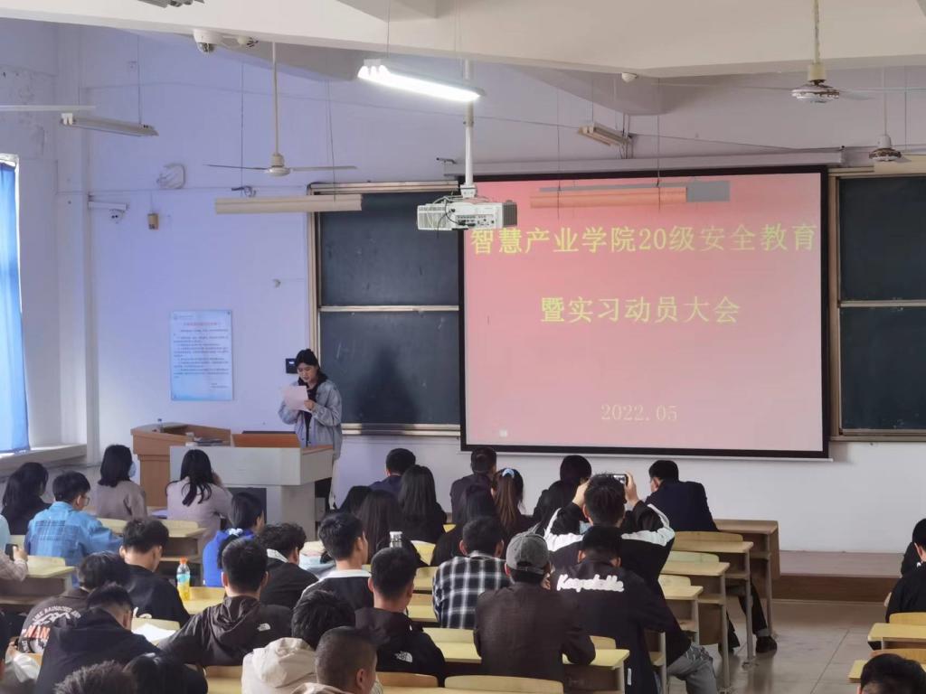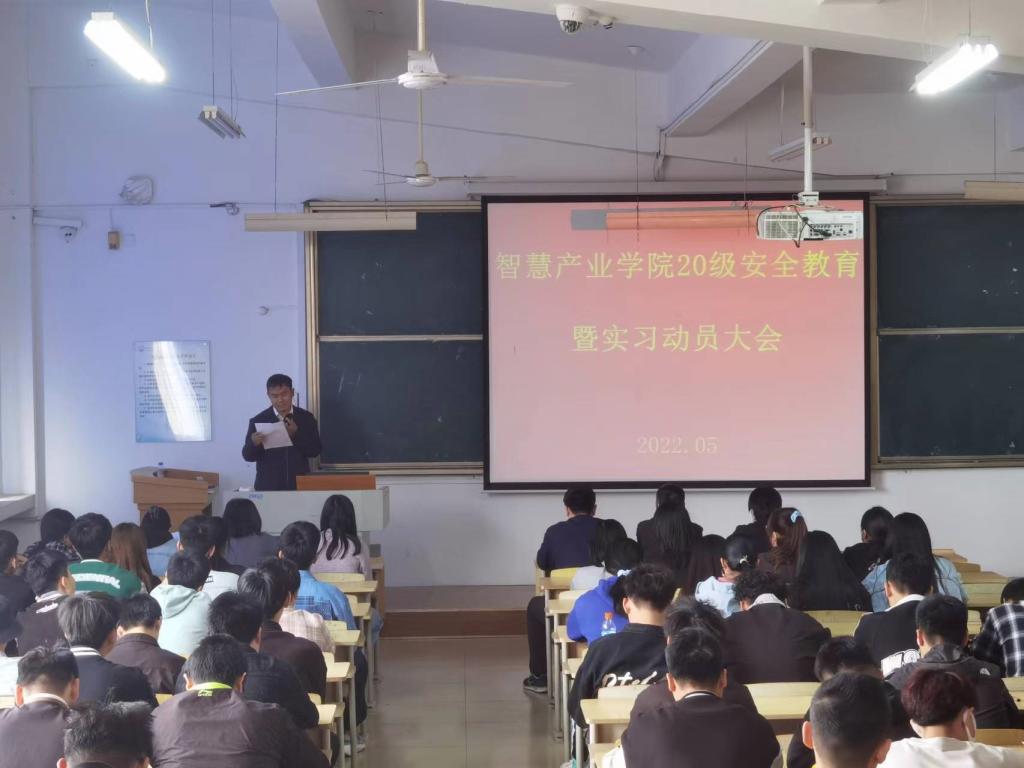 为切实做好学生生产实习及毕业实习工作,强化学生安全意识、责任意识和防护意识。2022年5月9日下午,智慧产业学院在师专校区南院1教408教室面向20级全体学生召开安全教育暨实习动员大会。