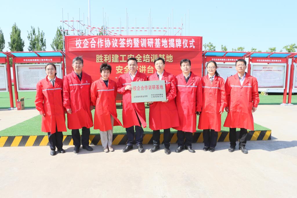 5月13日下午天晴气爽,碧空万里,在中石化胜利建设工程有限公司安全培训基地,我校与胜利建工的“校企合作训研基地”揭牌仪式隆重举行。参加揭牌仪式有学院院长张玉珍,人才发展与继续教育学院(培训学院)院长明光、书记李德俭、副院长马轶男、副院长马心俐及教师代表王薛燕、吕志昂、贾继成;胜利建工纪委书记、工会主席宋国涛,人力资源部主任聂慧、副主任张庆民及部分员工代表等。