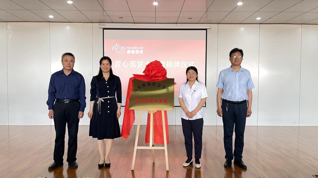 启动仪式上,孙卫娟副院长同张春荣、杜书东、孟向明等三位技能大师共同为“匠心筑梦大讲堂”揭牌,同时为三位嘉宾颁发客座教授聘任证书。