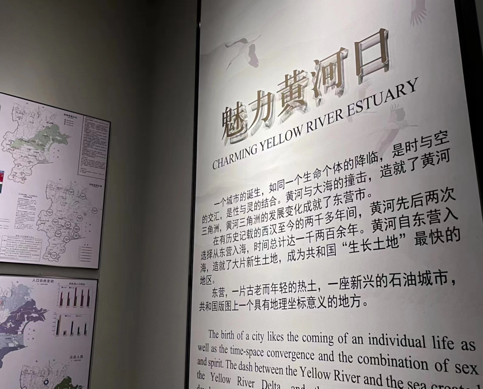黄河文化馆整体分为四层,二至四层是主展馆,以“大河奔流”为主题,分为“中华母亲河”、“魅力黄河口”两大板块,通过壮美黄河、四季如歌等八个展厅,从河图、洛书开篇,讲述了黄河起源、大禹治水、历史上黄河六次大改道、沿岸风土人情、东营的历史文化、胜利油田的开发利用等篇章。智慧旅游技术应用专业同学以任务为导向,在黄河文化馆进行黄河诗歌诵读、歌曲演唱、黄河文化展报制作等丰富多彩的活动,推广与宣传黄河文化内涵,领略黄河文化魅力。