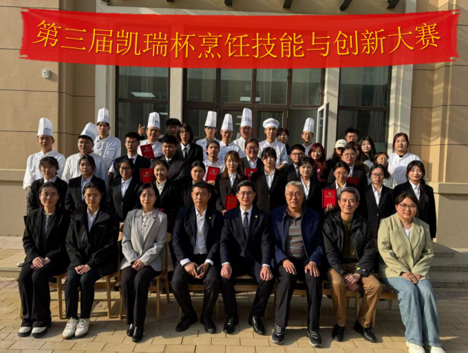 酒店管理学院在职教周期间举办第三届凯瑞杯"守匠心·精技艺·创未来"烹饪技能与创新大赛。本次大赛由山东凯瑞集团赞助,并邀请企业专家领导现场指导学生制作菜品。大赛吸引了众多学生踊跃参与,为校园带来了一场色香味俱全的美食盛宴。