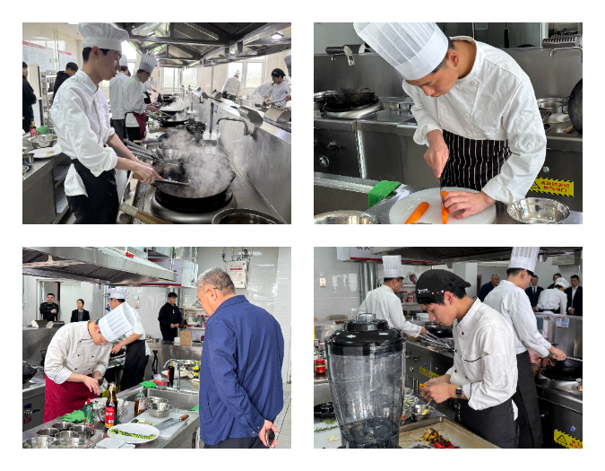 比赛设技能比拼和营养方案设计两个组别,学生通过精湛刀工和烹饪技法,呈现出色香味俱全的美食作品。由专业教师、行业大厨和企业管理者组成的评委团,从色香味形意及创新度等维度严格评审,最终评选出一、二、三等奖。