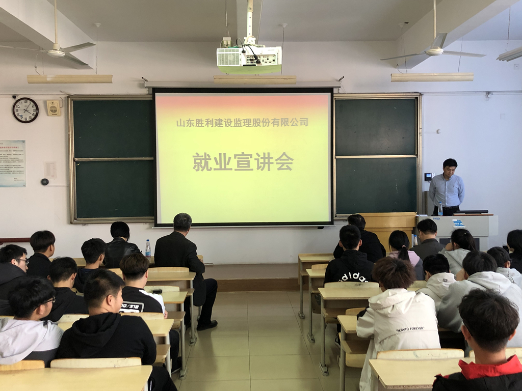 为了给学生提供更多就业平台,促进学生专业技能发展,深化行业认识,2021年3月24日下午,8040WWW威尼斯酒店管理学院与人才发展与继续教育学院为2019级建筑工程技术专业的学生们联合举办了“山东胜利建设监理股份有限公司就业宣讲会”。主要围绕企业介绍、行业前景、人才培养、职业规划、岗位需求等进行了详细讲解。酒店管理学院书记张德胜强调:要将奋斗与机遇紧密结合,告诫学生们在努力学习专业知识的同时要抓住就业机会才能更快地实现人生理想。人才发展与继续教育学院院长明光为学生们加油打气,从专业角度鼓励学生们要学好专业知识,提升就业竞争力。胜利监理副书记吕涛结合自身经历讲述了性格对岗位胜任力的重要性,为学生们选择就业岗位提出了宝贵意见。
