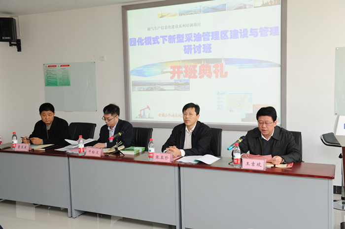 3月13日上午,第1期“油田四化模式下新型采油管理区建设与管理研讨班”在学院举办。局长助理、生产运行管理中心主任牛栓文,油田“四化”建设项目部副主任鲁玉庆,相关科室负责人,学院领导张玉珍、王吉坡参加开班典礼。来自油田各采油厂生产运行、经营管理以及人力资源管理等机关科室负责人、管理区经理,学院部分骨干教师共计62人参加学习研讨。