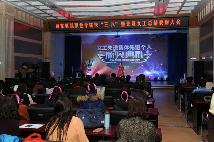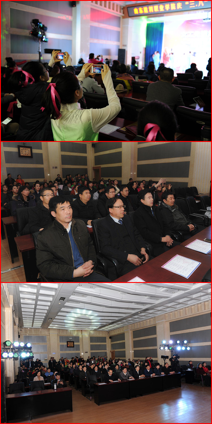 3月6日下午,学院庆“三八”暨先进女工总结表彰颁奖典礼在学术报告厅隆重举行。学院领导张玉珍、李锡金、刘路军、王吉坡出席活动,来自学院各单位的近200人观看演出。