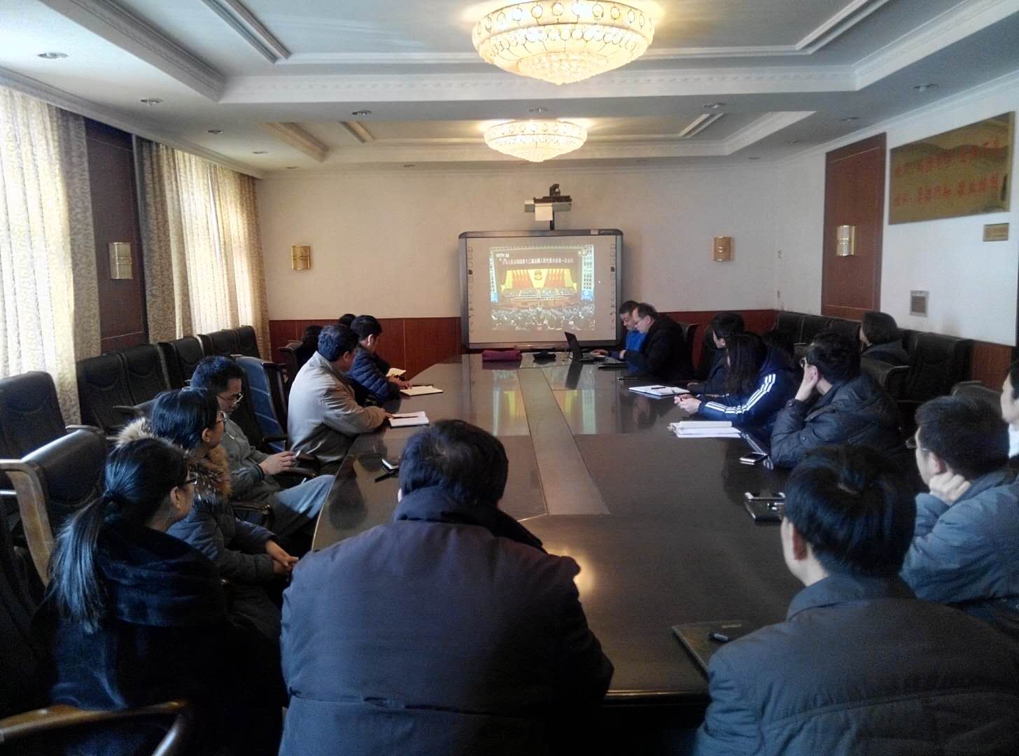学院组织党员干部通过直播观看十三届全国人大一次会议开幕会。学院领导、首席专家等党委理论学习中心组成员在办公楼二楼会议室观看直播,各党支部组织党员干部在院本部校区、建设工程校区、交通工程校区、医疗卫生校区、职业技能训练中心校区观看直播。
