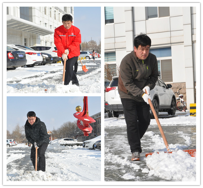 2月2日一场大雪不期而至,雪后初晴,机关党政管理党支部立刻组织党员干部清扫积雪。大家热情高涨,干劲十足,雪锨开路,扫帚清理,不到一小时,办公楼南大部分积雪被清理干净,确保来往职工的行路安全。