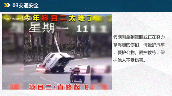 交通安全是很重要的一个方面,很多学生假期正在学驾照或者刚刚拿到驾照,用车安全就显得尤为重要。通过视频给同学们普及了交通知识,观看了常见交通事故,提高安全用车的意识。学院和学生家长们也进行了沟通,共同重视学生假期安全。
