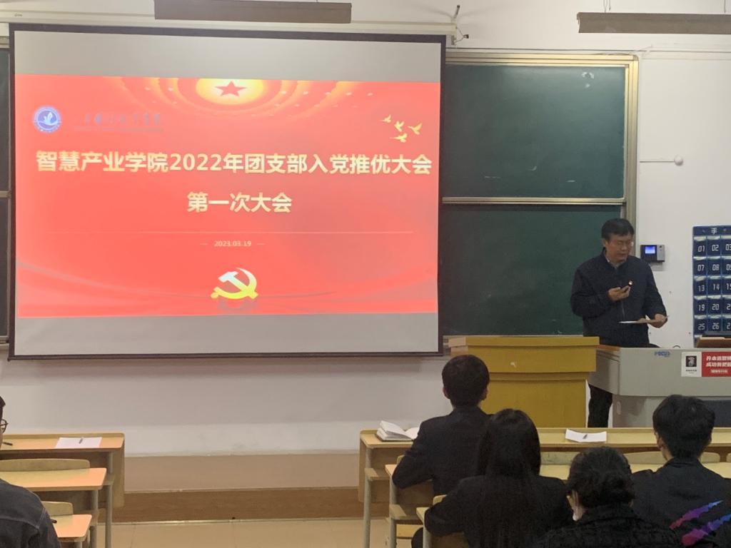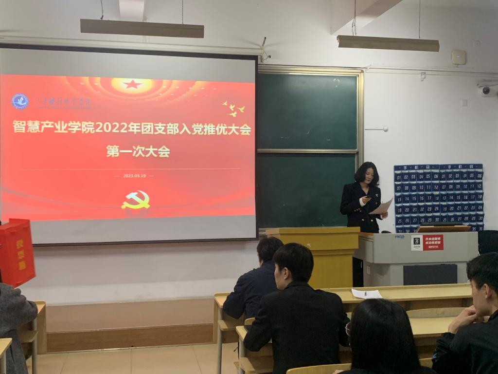 为加强党的队伍建设,把有文化、有能力、思想道德修养好的优秀青年吸收到党内来,2023年3月19日智慧产业学院团推优大会在炎培学堂204教室举行,会议由智慧产业学院宋佳琦老师主持,校团委及智慧产业学院领导出席本次会议。