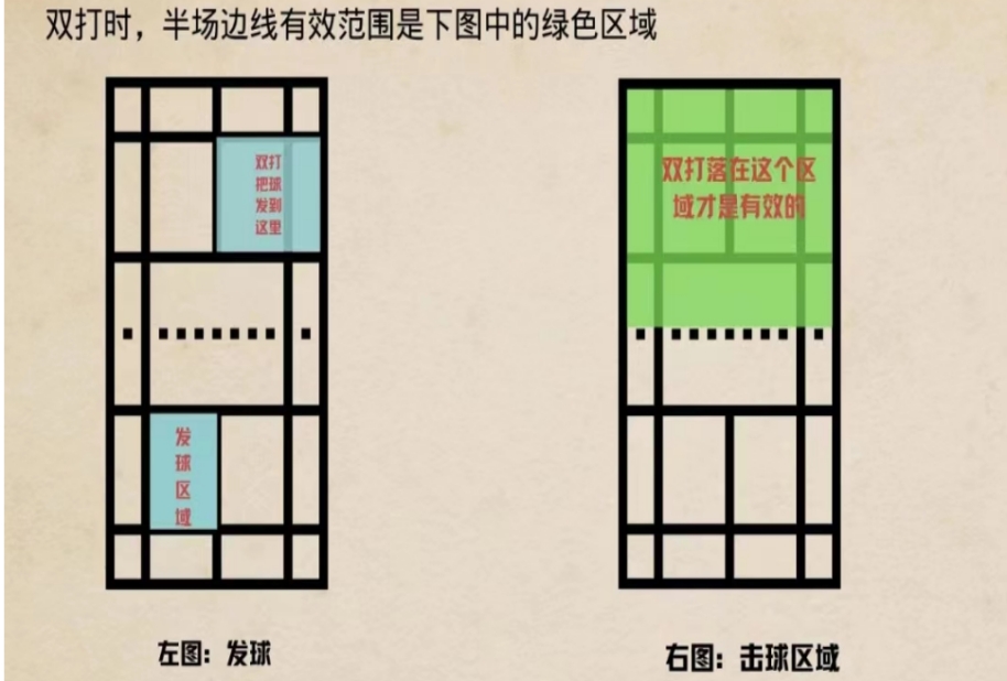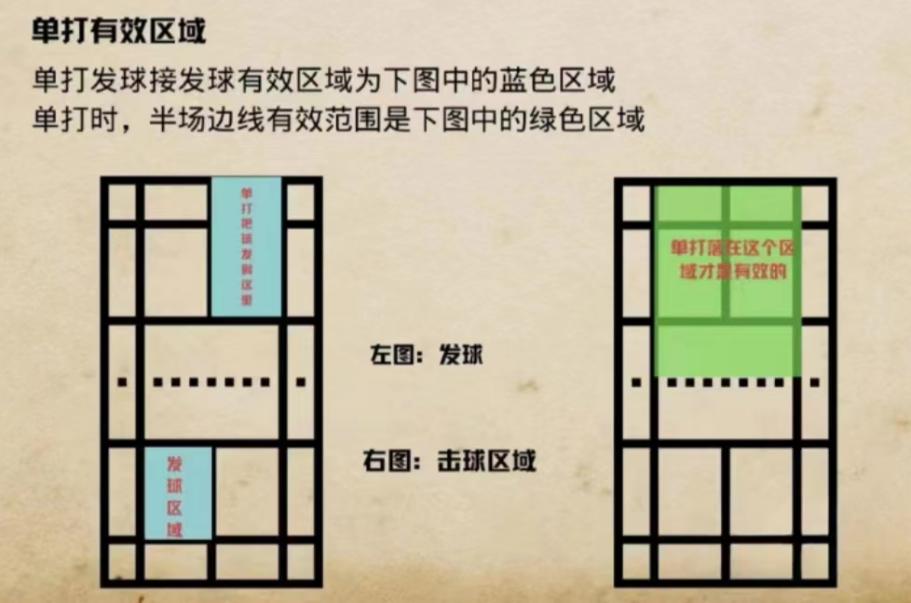 B.一局中,发球员的分数为单数时,双方运动员均应在各自的左发球区发球或接发球。(发球区如下图)
