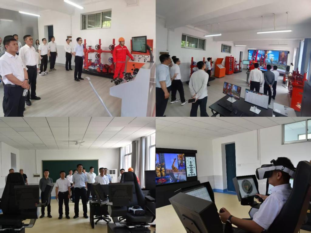 上午,中海油专家团队实地考察了学院华山路校区育人环境,随后重点参观了济南路校区新落成的定向钻井与井下作业虚拟仿真实训室。企业专家现场观摩虚拟仿真教学系统运行场景,并亲身体验智能化实训设备。杨峰副书记详细介绍了学院在产教融合、实训基地建设等方面的创新成果,强调学院始终以服务国家能源战略为核心,着力培养“实用型、复合型、紧缺型”技能人才。