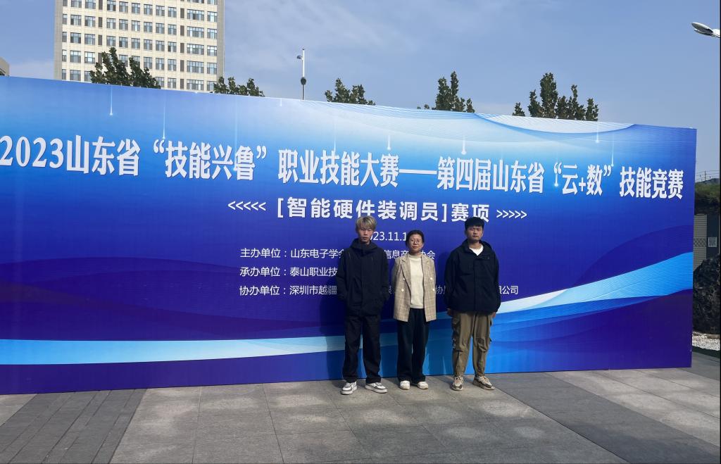 2023年第六届山东省新一代信息技术创新应用职业技能竞赛5g基站建设与维护赛项中23级计算机x1班郭和帅、高尚、王敬超、丛娅铭获省三等奖。